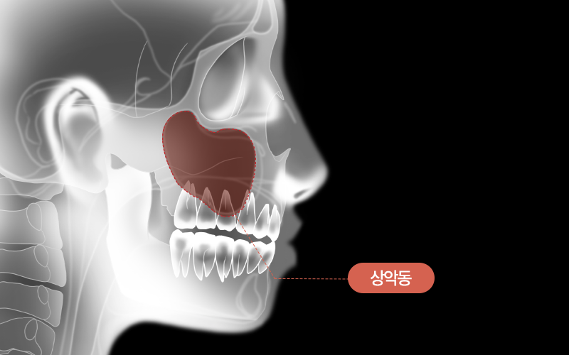 상악 어금니 뿌리와 상악골 내 빈 공기주머니를 상악동이라고 합니다.